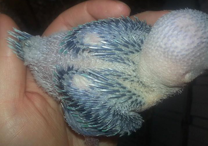 Buddha, my little guy inside has started to get the grey under the skin on his wings to show his pin feathers are coming. He has tiny grey dots on his bottom showing the pins are coming slowly. When I feed him he does not keep still at all. It's so frustrating to feed a bird that wants to wander all over the bench instead. He is also big enough to grab the top of his container which then makes him make the feeding noise. Which is annoying when he does it during the night while I am trying to sleep, as I can hear him in the other room. He still is only half the size of his brother.