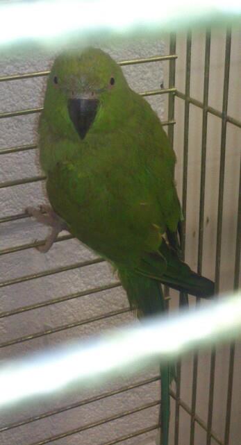 i basically rescued this bird from a small cage in a pet shop..they told me it was from a clutch of 4 ringnecks the owner bred in 2011...i was convinced it was a conure..in the end i was sick of seeing it quiet ans shoved into the corner behind the more popular macaws so i bought it...such a softie, but have room in 3 aviaries and it gets on ok with my other ringnecks..still very wired to see its jet black beak every day