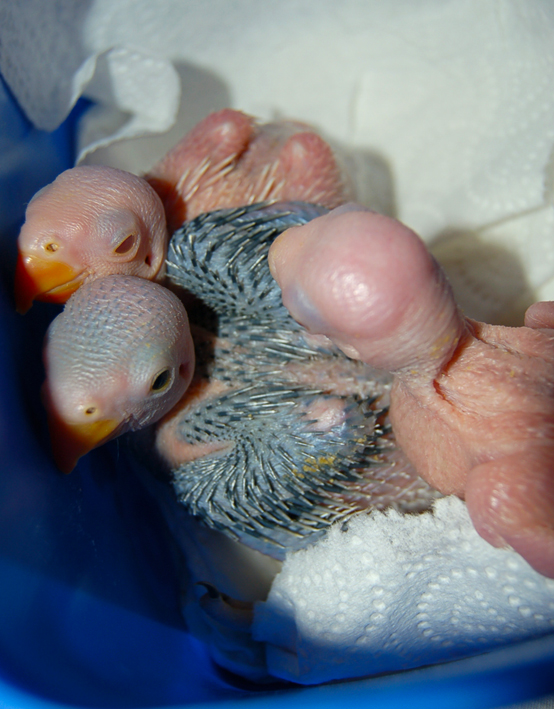 man they look funny when they start gettig their pin feathers, like little aliens, found a pick of my blue baby when he was 3 weeks old, with his head in my mouth, and this little porcupine body sticking out, who knows what he used to look for in their, food maybe?