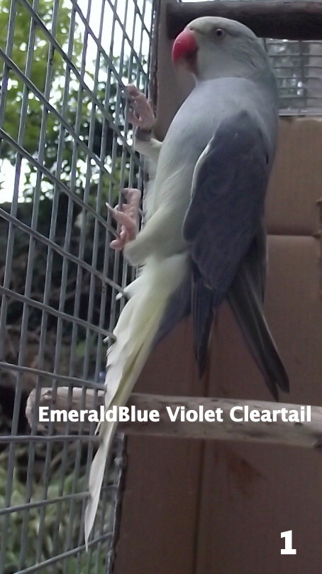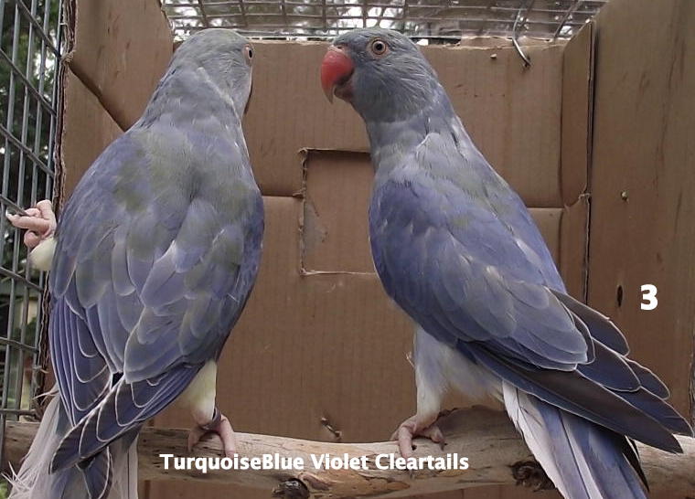 Photo 1 is of a Violet EmeraldBlue Cleartail chick it simply shows how Violet Blue the bird is. For me this means that if the mother is not a parblue she must be an Emerald Green TurquoiseBlue Cleartail not a split turquoise.