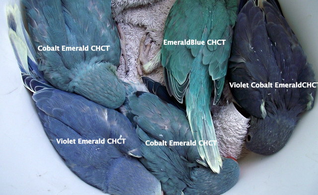In summary I am now certain that my TurquoiseEmerald Cleartail hen and her Violet Cobalt Cleartail partner produced 7 chicks that were either turquoise or emerald but never both or neither. I believe this provides about 99% proof of the parblue position.