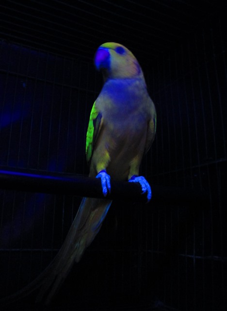 Hi Kappa, with the pic of your 2 chicks, deep green and green respectively, does a green bird show flourescence under uv light and if so, how much compared to a deep green?