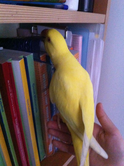 It's very effective to get on the animal's level for animal photos. You do that so well. Also, you let the bird take up most of the picture, but you keep enough background to put him in context. Also your photos are interesting - the bird is doing something worth seeing, AND you give a clever title. I would put that "Borek you can't hide" shot on the wall, I like it so much. Some of the Budgie pictures with the toilet paper roll are very, very pleasing as well. You have natural talent and instinct! Yay!