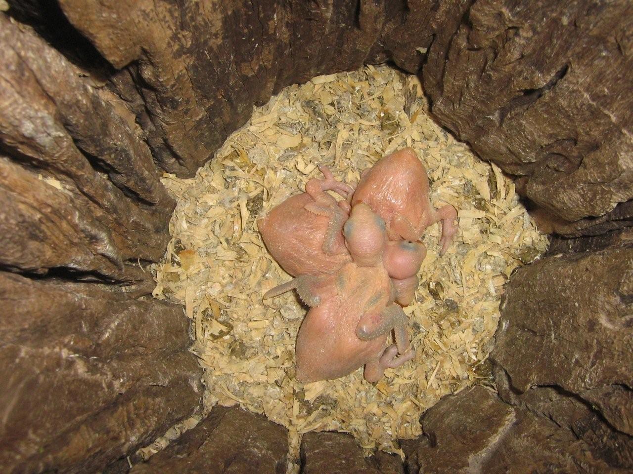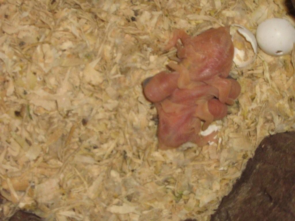 Well after a dud clutch of 4 eggs first up I had almost given up hope of any young ones this year. I checked the nest tonight, where mum was having another shot at it, and sitting on another 4, it turns out 3 of them were fertile! :o