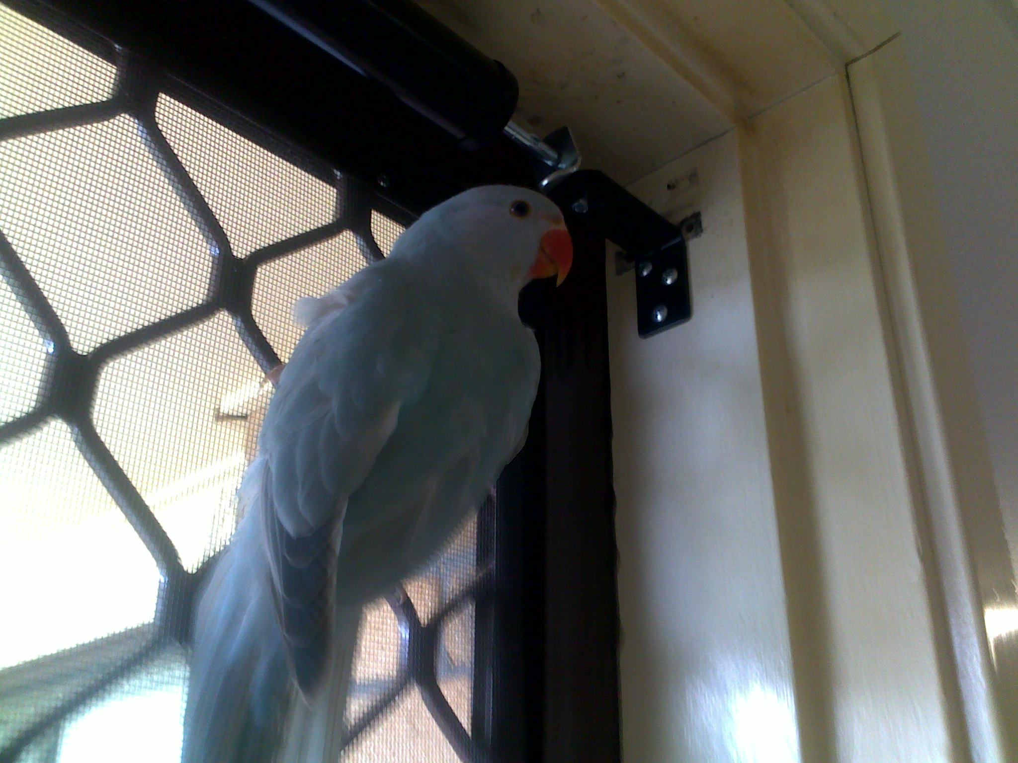 got my babys wing got clipped today so he's been out for a few hours roaming the house :] i gave him a bit of corn, he's loving it. he's not tame but he's getting there thank god. i was starting to give up but things are finally looking up now! he's so cute! he's never had celery before so i held it to him getting closer and closer and he took a bit out of my hands and ran away :] yay