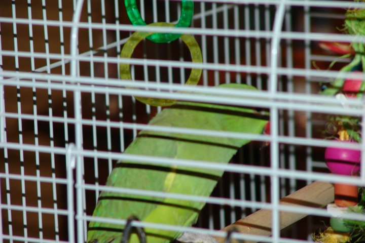 he lost a few tail feathers and now his tail looks a bit ratty his wings are clipped and they look a little ratty coming in also he need alot of love for sure!
