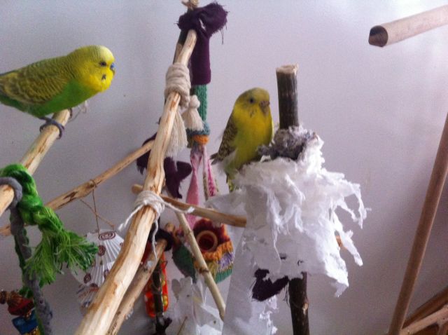I'm so sad because I couldn't good mama for them. they don't want to eat anything but budgie foods. I am trying give them different foods but it doesn't work out. I give her vitamins too but Her condition still bad. They have a strong bond each other so they don't interested in me. so there are my budgies :
