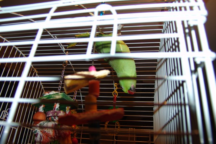 SO Cute!!! What a little clown hanging upside down in his cage.