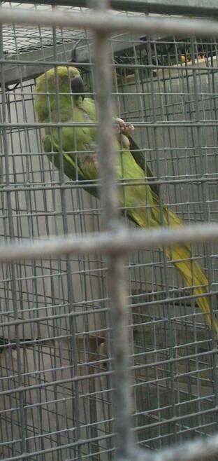 i basically rescued this bird from a small cage in a pet shop..they told me it was from a clutch of 4 ringnecks the owner bred in 2011...i was convinced it was a conure..in the end i was sick of seeing it quiet ans shoved into the corner behind the more popular macaws so i bought it...such a softie, but have room in 3 aviaries and it gets on ok with my other ringnecks..still very wired to see its jet black beak every day