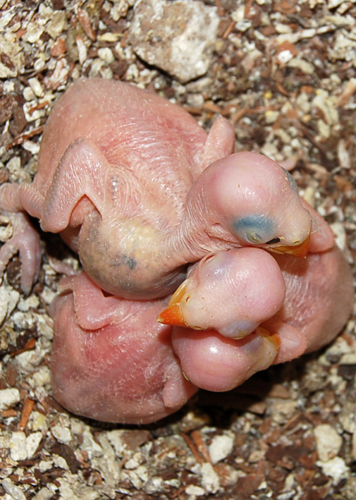 man they look funny when they start gettig their pin feathers, like little aliens, found a pick of my blue baby when he was 3 weeks old, with his head in my mouth, and this little porcupine body sticking out, who knows what he used to look for in their, food maybe?