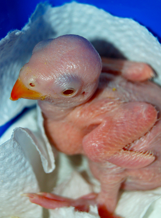 man they look funny when they start gettig their pin feathers, like little aliens, found a pick of my blue baby when he was 3 weeks old, with his head in my mouth, and this little porcupine body sticking out, who knows what he used to look for in their, food maybe?