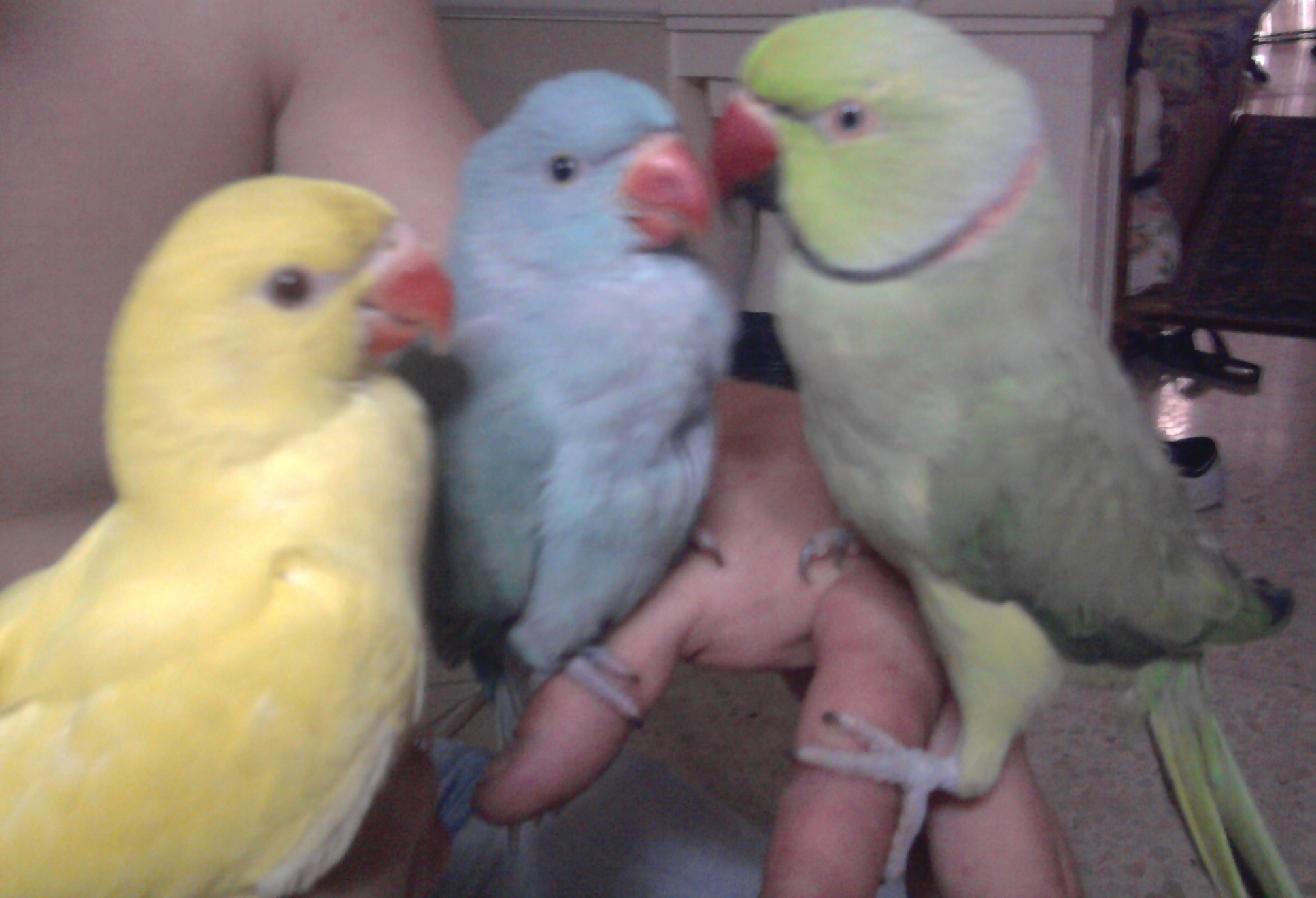 I have 2 Ringnecks, a green male (named 'Pipo') he is 2 years old now.. We brought him at home when he was 1 year old, because we were talking to a friend of ours and he was telling us that he has a ringneck but doesnt have time for it, he was in cage with no attention. He told us if we know someone to take the bird and we decided to take him at home.. At first he was very aggressive with everyone.. but than i started taking him out of the cage every single day and now he is like my baby, he dance, talk, he is a very intelligent parrot, but sometimes he is still naughty and tries to bite