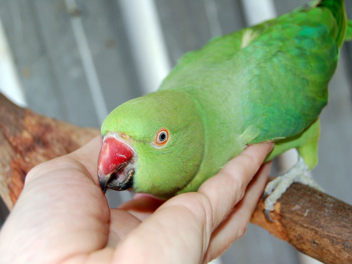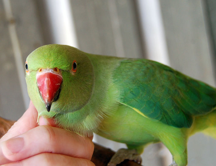 Here are a couple of pics I took of my green IRN, Junior 'G', that I bred in 2008. Parents raised her until aprox 1 or 2 weeks before fledging then I removed her from the nest to quieten her down. She was an only child and didn't take too long at all to tame. She has NEVER gone through the bluffing stage and hardly any handling now as she is in the aviary. She flies to the front to greet me and flies over for a nice little head rub when I enter her cage.
