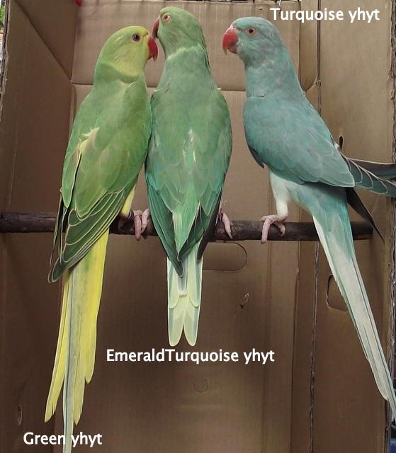 1. The yellow bellies are very different in hue and, whilst the EmeraldBlue yhyt's belly looks white in the photograph, I can assure you it is actually pale yellow. In fact, the mother's belly colour looks to be part way between that of the Green and the Emerald.