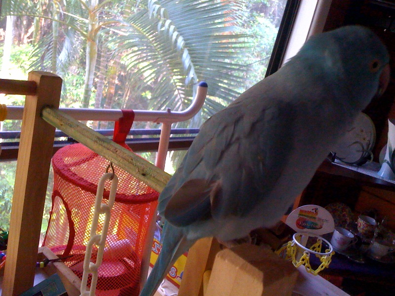 She is currently going through a moult. Janey and Charlie seem to be getting on ok, I haven't noticed any big fights although they do have the occasional squabble.