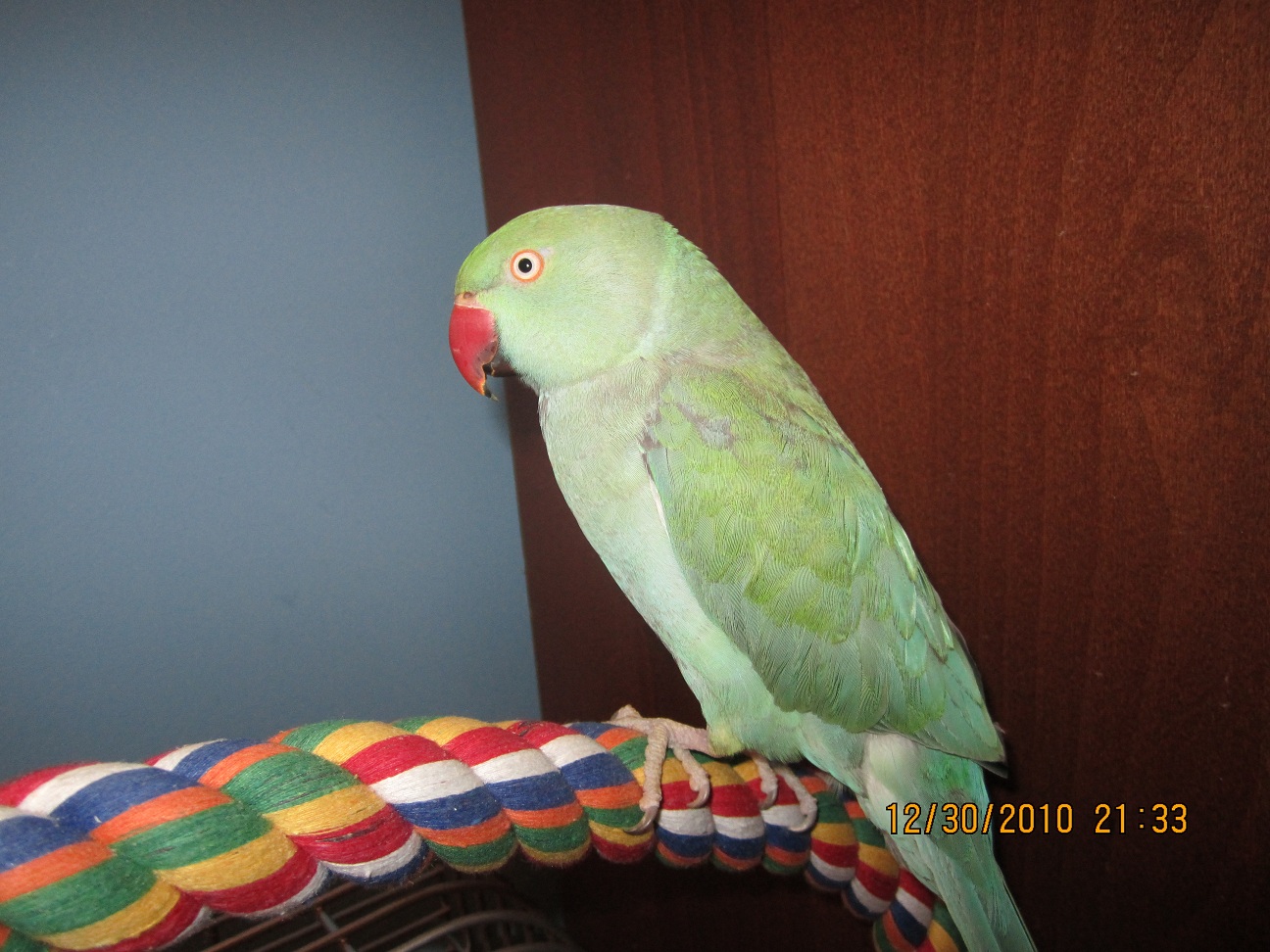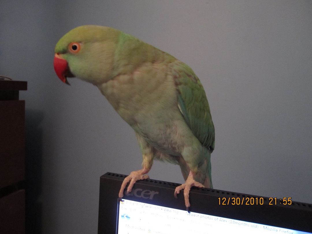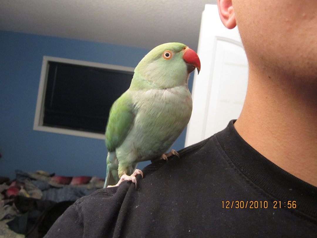 Being an old(er) bird, I knew it would take some time to train and tame her. I can sense (in the same way I'm sure all bird owners know) that she is slowly getting comfortable with me. She doesn't bite me as often, and will sit on my shoulder now without screeching and trying to flap away! Her favorite treat is Red peppers. I can't really pet her yet, and she doesn't like to step up when she's in/on her cage, but I know that patience is everything.