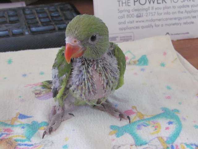 Hello everyone, my name is Angela and I am from Illinois, USA and have been lurking around here for a little while now. I figured it was time to introduce myself and yoshi too. Yoshi is a green 3-4 week old IRN that I am handfeeding to be my companion. I breed and handfeed tiels, lovebirds, parakeets, and quakers so very experienced when it come to handfeeding.